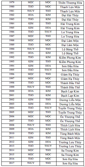 Trước hết chúng ta cùng nói về Mệnh Sinh (hay mệnh Tử vi). Đây là loại mệnh mà hầu như mọi người đều quen thuộc, dùng để xem trong tử vi hàng ngày, xem tử vi cưới hỏi, coi bói toán. Dù bạn là nam hay nữ, chỉ cần có cùng năm sinh Âm lịch thì mệnh sinh sẽ giống nhau (Ví dụ: 1986-1987 là Lư Trung Hỏa, 1988-1989 là Đại Lâm Mộc, 1990-1991 Lộ Bàng Thổ...). Mệnh sinh sẽ lặp lại sau 60 năm (Ví dụ: Người sinh năm 1930 và 1990 đều có cùng mệnh sinh là Lộ Bàng Thổ).