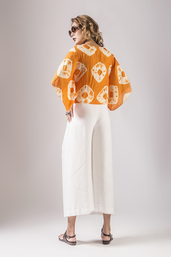 Vita Kimono Sleeves Silk Blouse/ Fire