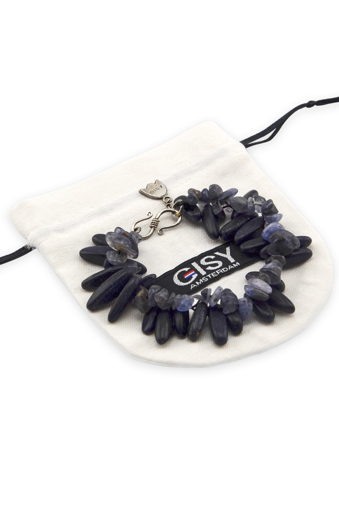18cm, gold stone & saphire, large silver S hook, GISY silver 925 tulip logo