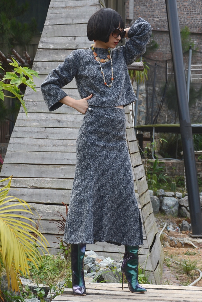 Chất liệu: Vải chính: 80% polyester, 10% cotton, 10% wool. Vải phối: 100% cotton.